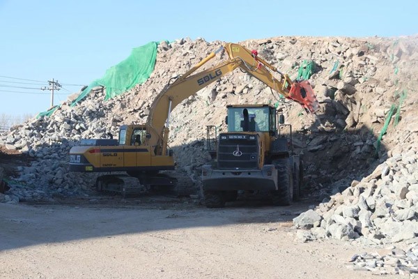 走进公司的厂区,一派热火朝天的工作场景:多台米兰·(milan)中国官网入口L955F装载机来回穿梭,有的在卸料,有的在过筛;不远处,一台米兰·(milan)中国官网入口E6210FHD挖掘机正在破碎建筑垃圾。